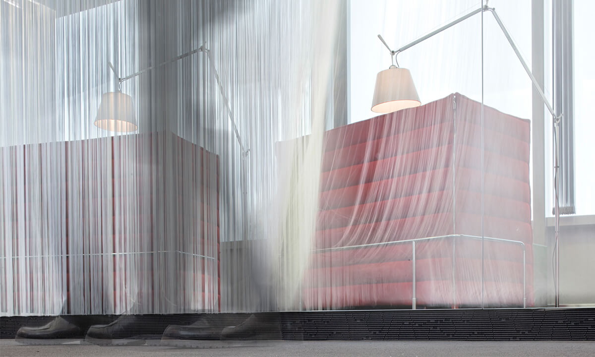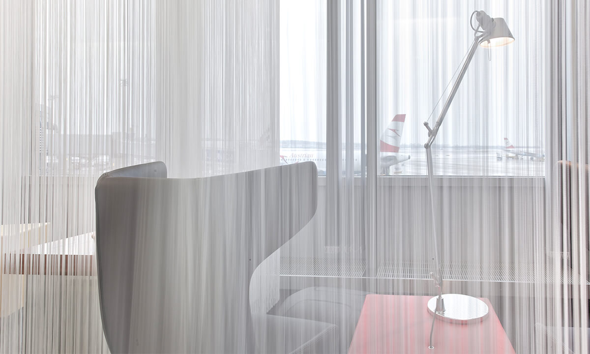 „Auf Flughäfen, die nach Marc Augés "Vorüberlegungen zu einer Ethnologie der Einsamkeit" zu Recht als prototypische Un-Orte gelten, erfüllen Lounges häufig eine Zufluchtsfunktion für die nomadisierende, sogenannte Weltgesellschaft. In einer Flughafen-Lounge wird das Faktum "Warten" durch unterschiedliche Funktionen entlastet. Die Nutzungsinseln der Air Lounge am Flughafen Wien (Welcome Desk, Food and Drink, Business Area, Working Area, Relax Zone) sind durch gediegende Möbelarragements sowie durch Abtrennungen aus durchlässigen Schnurvorhängen definiert.