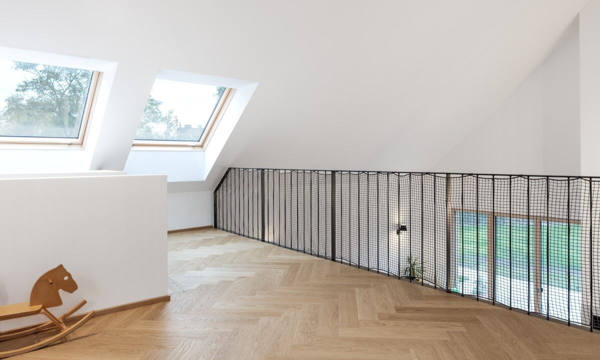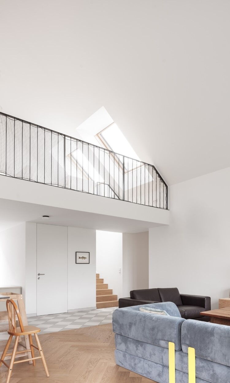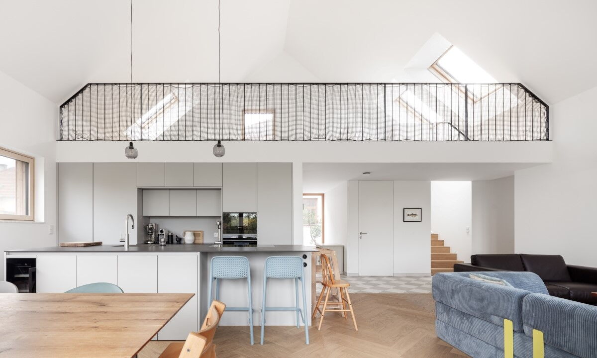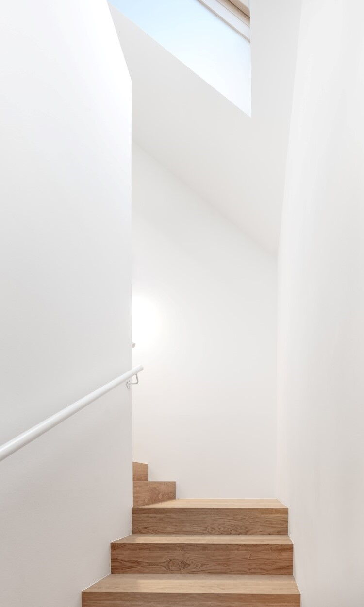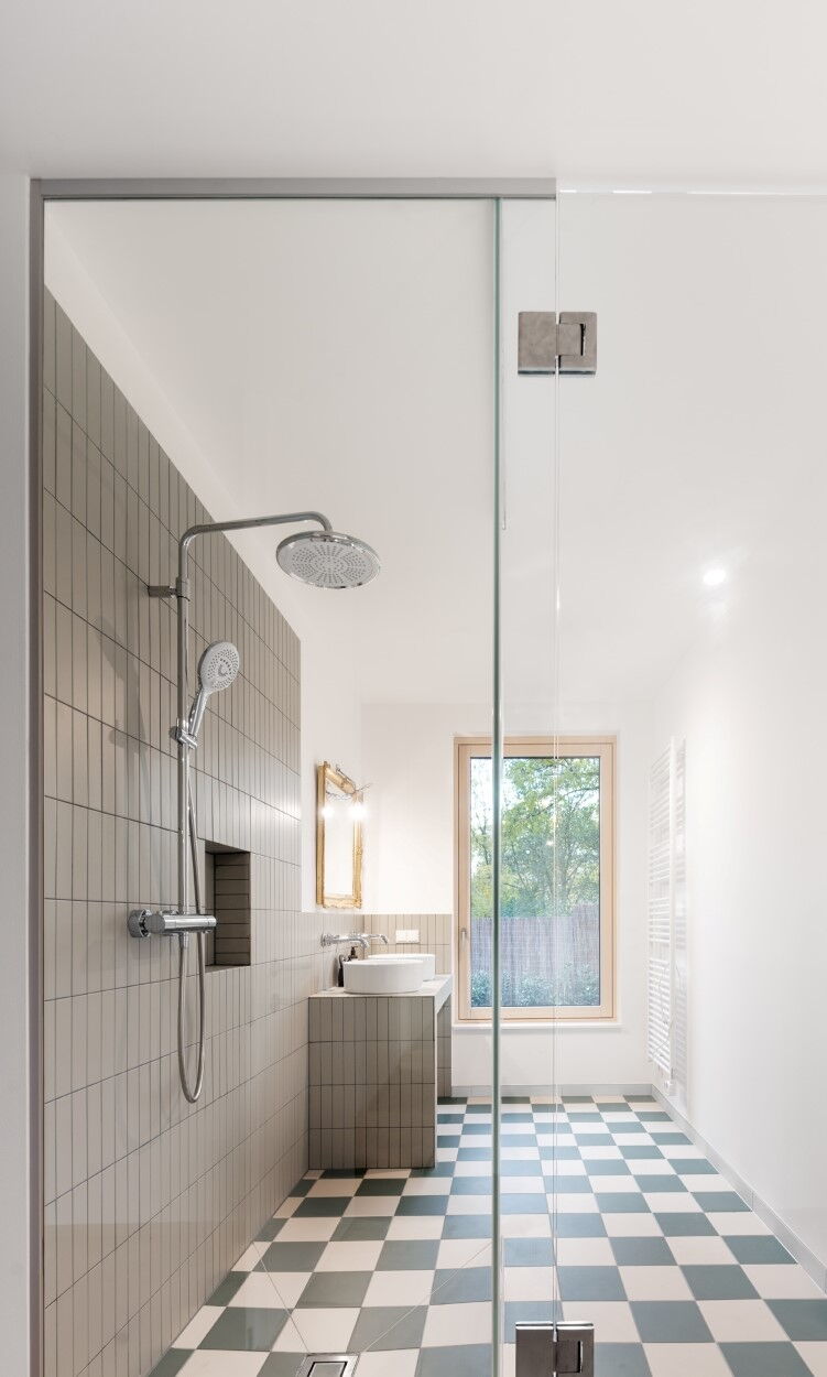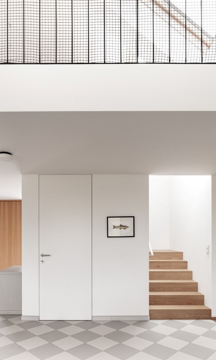 Der Neubau wurde so positioniert, dass anstelle der vorherigen drei Restflächen eine große zusammenhängende Gartenfläche entstand. Diese orientiert sich in Richtung der daneben fließenden Schwechat und somit sind von der Terrasse und vom Garten so gut wie keine Nachbargebäude zu sehen. In diese Richtung öffnet sich das Haus; zu dem direkten Nachbarn auf der gegenüberliegenden Seite bleibt es relativ geschlossen.