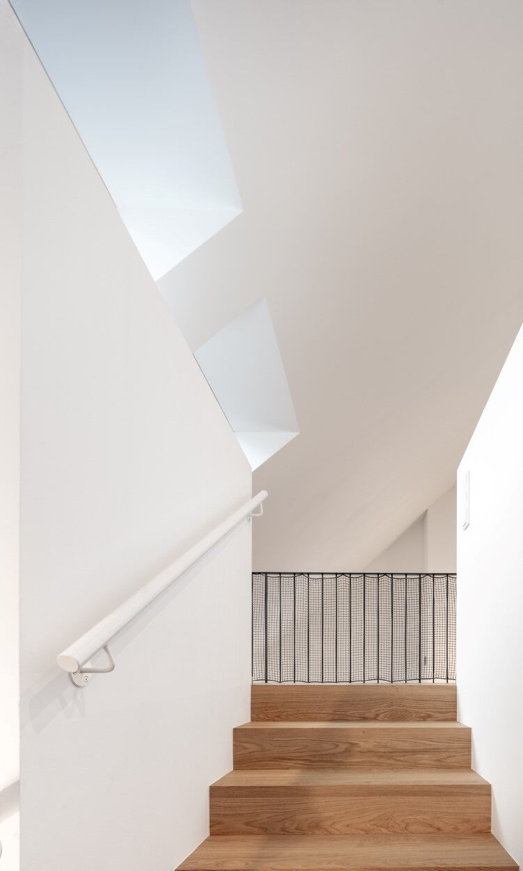 Das Haus SHS ist ein Neubau in Holzbauweise. Ursprünglich hätte das Bestandsgebäude umgebaut werden sollen. Obwohl relativ jung (aus den 1980er Jahren), hat sich der Umbau dieses Gebäudes, nach eingehender Überprüfung, als technisch und wirtschaftlich zu aufwendig erwiesen. Die damals gewählte Bauweise mit Massivfertigteilen (sowohl für Decken als auch für Wände) ist für einen Umbau zu unflexibel.