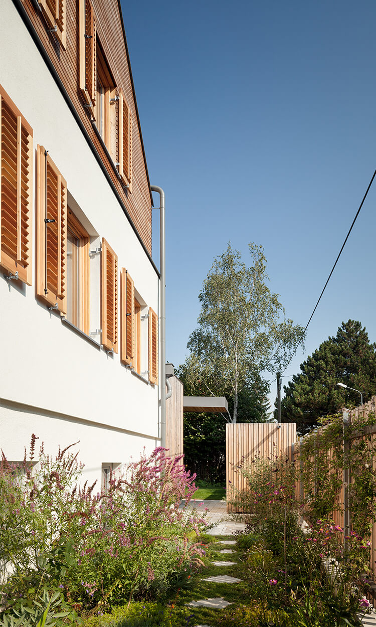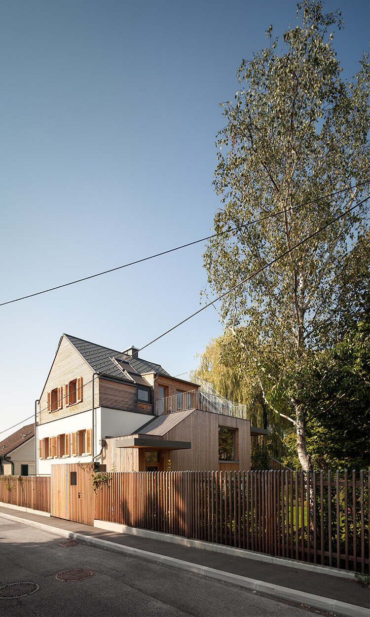 An der Nordseite wurde in Massivbauweise ein Zubau errichtet, welcher auf Gartenebene einen Windfang mit Stiegen in den Keller und ins EG aufweist, sowie im Keller eine Sauna und ein kleines Bad, und im EG eine Toilette und die Garderobe. Das Dach wird als Terrasse genutzt. Westseitig wurde ein aufgeständerter Zubau in Holzbauweise angebaut, welcher im EG die Wohnküche vergrößert und sich mit vielen Fenstern in Richtung der imposanten Weide hin öffnet. Im Obergeschoß konnten durch den Zubau ein 3. Schlafzimmer sowie WC und Bad realisiert werden.