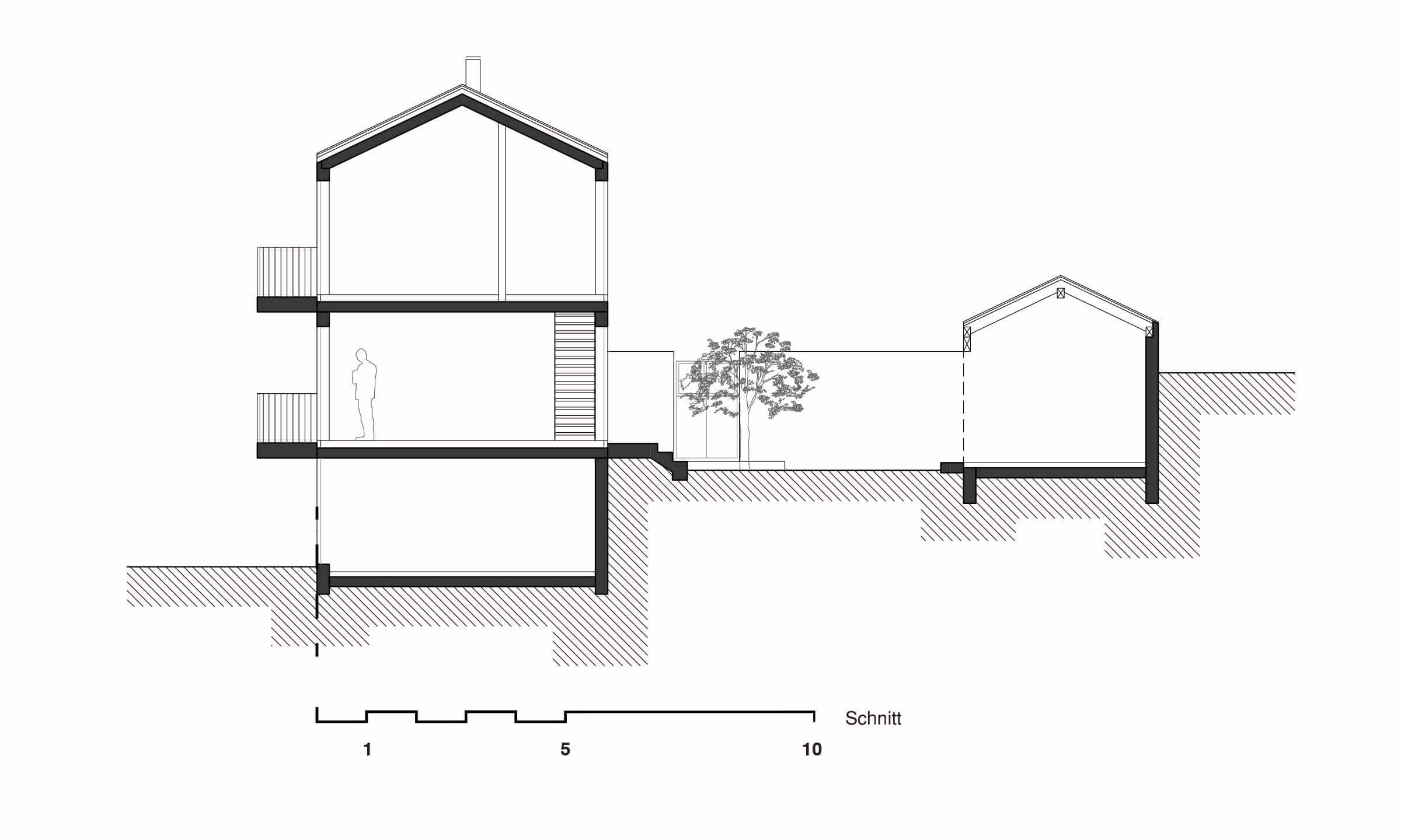 Bauherr und Architekt war es wichtig, dass sich das Haus einerseits nicht zu sehr von dieser Art der Bebauung abhebt sie aber zugleich etwas anders interpretiert.