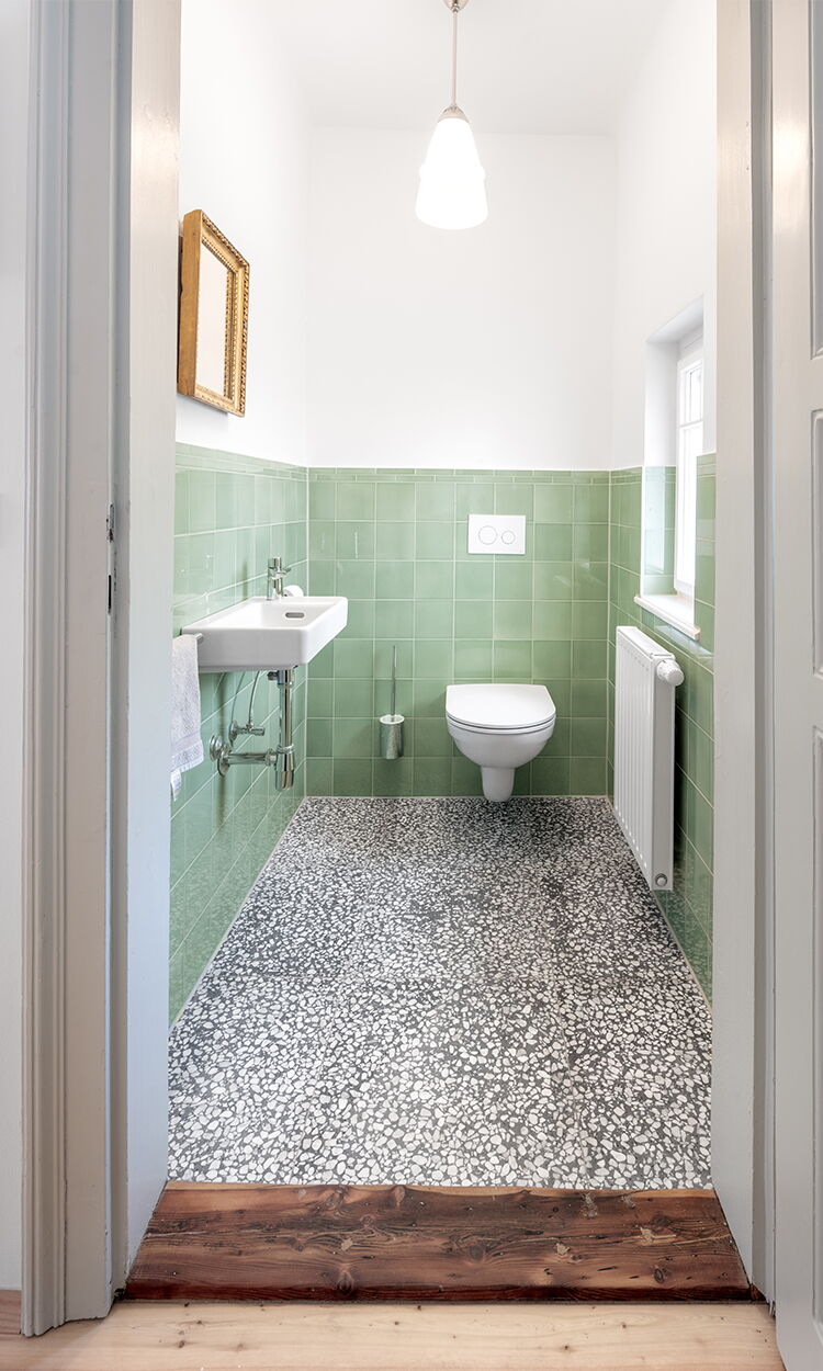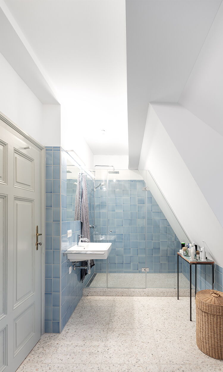 Im Erdgeschoß wurden die Zwischenwände der kleinen Einliegerwohnung entfernt. Dadurch entstand ein großes Gästezimmer. Ergänzt wird dieses durch ein Badezimmer.
