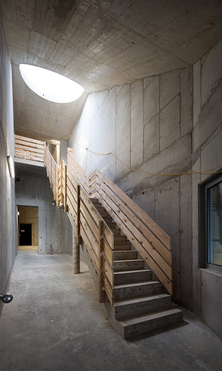 Als Bauweise wurden 25cm Stahlbetonwände mit 20cm Vollwärmeschutz gewählt. Die Flachdächer wurden als Warmdach mit bituminöser Abdichtung und Kiesschüttung ausgeführt. Die Dachgeschoßaufbauten sind Holzkonstruktionen in Pfosten-Riegel-Systematik bzw. Brettsperrholzdecken.