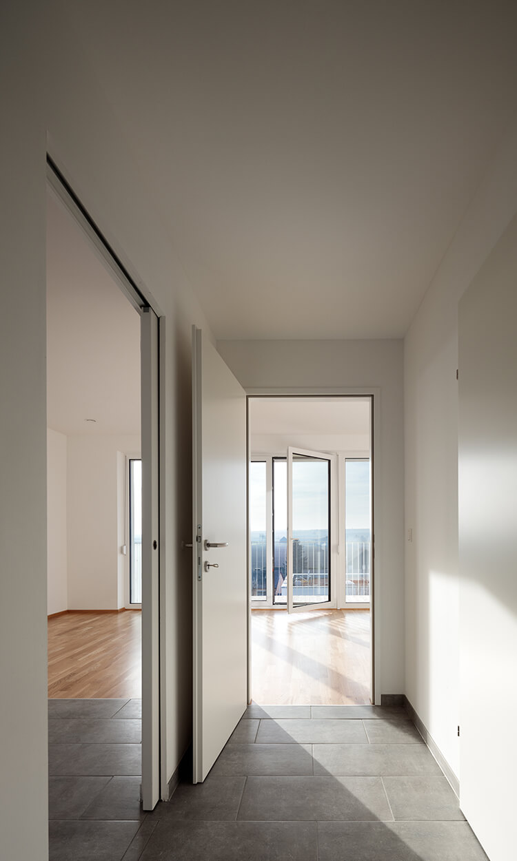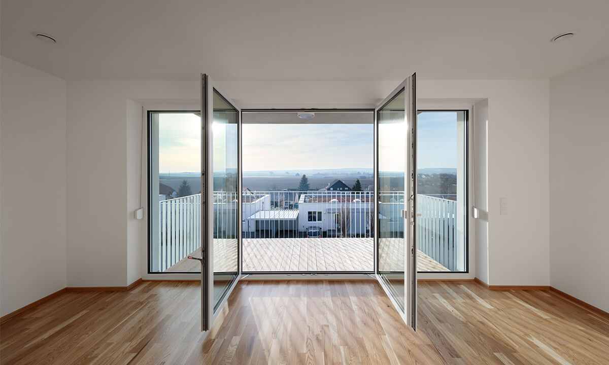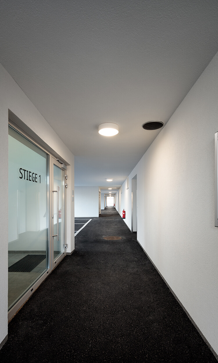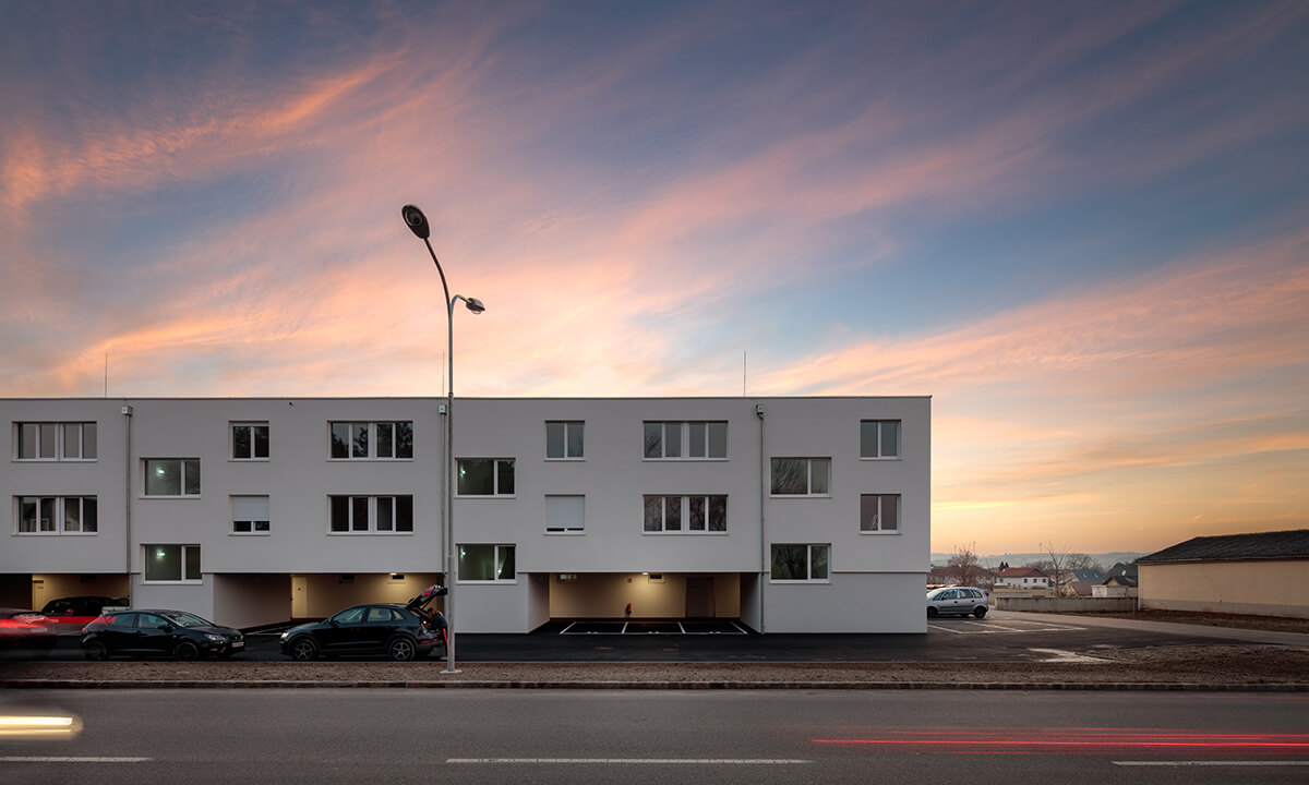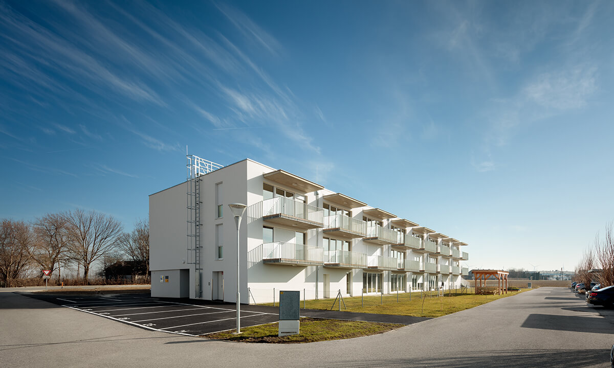 Bei der Entwicklung der Wohnungen wurde auf eine sehr kompakte Größe geachtet. In den Obergeschoßen gibt es 2- bzw. 3-Zimmer-Wohnungen. Jede Wohnung hat einen großen, dem Wohnzimmer vorgelagerten, Balkon Richtung Westen mit einem weiten Blick über den Ort und den Hügeln der Umgebung. Im Erdgeschoß gibt es 2 größere Wohnungen mit Eigengarten.