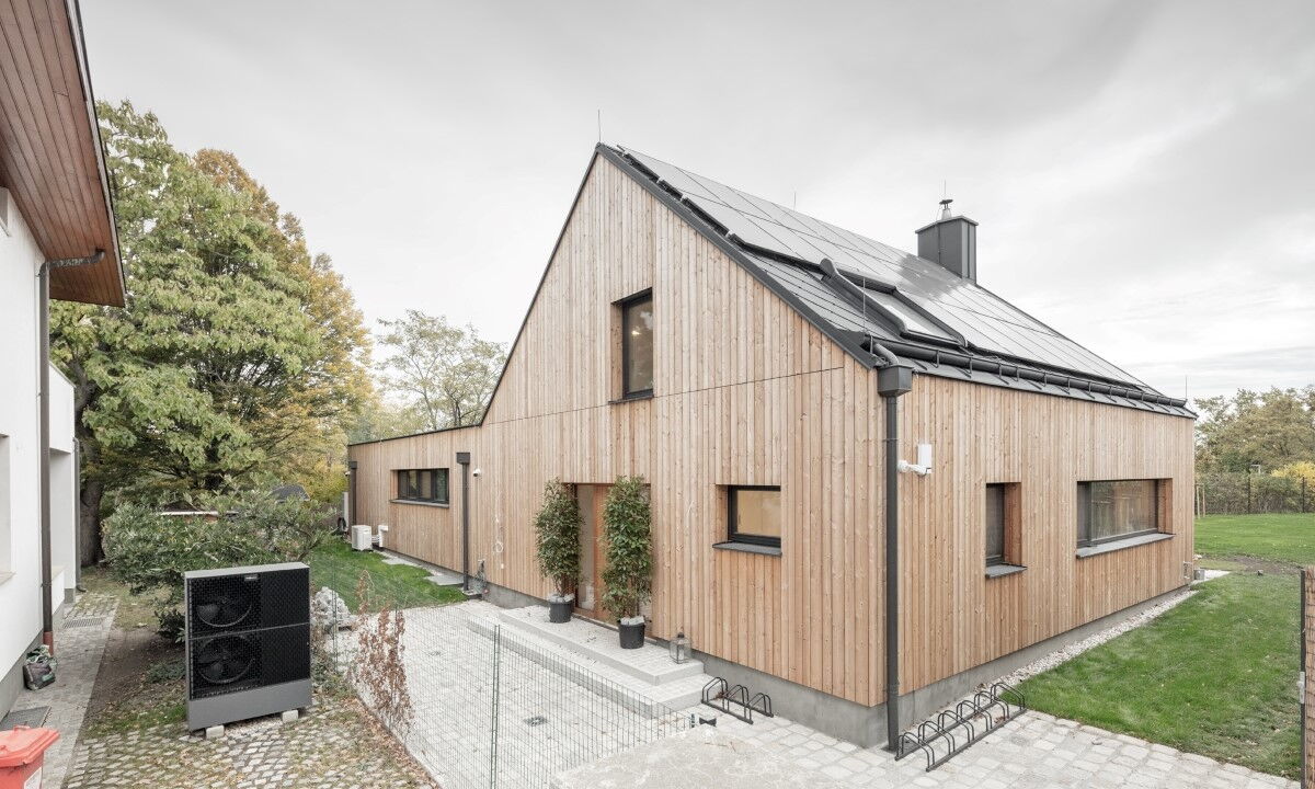Beheizt wird das Haus mittels Lüftwärmepumpe und Fußbodenheizung. Auf der Richtung Süd-Osten geneigten Dachfläche wurde eine Photovoltaikanlage installiert.